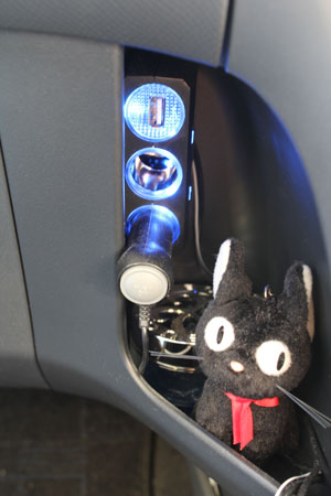 では、どうやって使えるのか確認したかというと、たまたまUSB電源ソケット付き増設シガーライターソケットを使っていたからです。