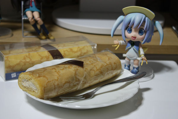 小ぶりでクレープ生地で巻かれたロールケーキを食べました。