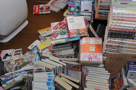 そんなこんなな今日の最後は、本棚に入りきらなくて床に積み上がっていた本が、雪崩を打って崩れるという。